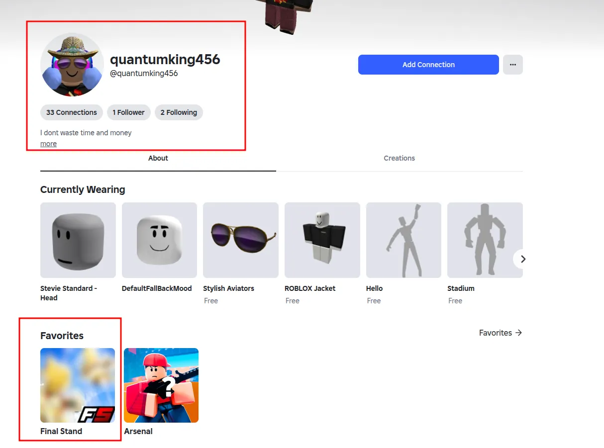 I needed a vpn for this step (guess who blocked roblox in his country~), and admittedly, this part was somewhat guessy (although everything in life is, so wouldn’t fault the author anyway). At first, I had zero experience with the roblox ecosystem, but as I spent some time there, I noticed the game final stand didn’t show in either accounts. Interestingly, quantumking345 has a friend with an eerily similar name: quantumking456