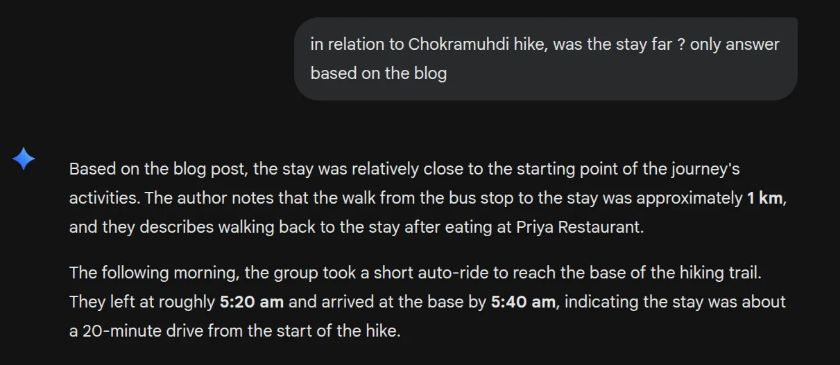 All we have to do now is use the base of the hiking trail as an anchor and see how much we’re far from the stay. Gemini says this:
