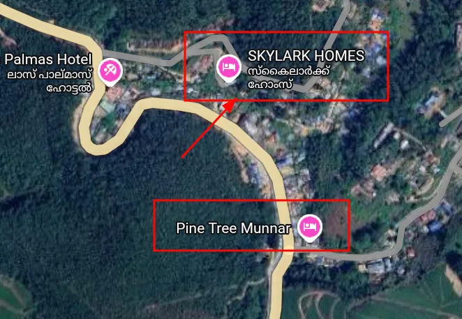 If you read the blog, you actually find out about the pine tree Restaurant shown in the map, so we’re definitely on the right track. Also, reading the blog reveals makeki and his friends took a right turn in a muddy road to reach the stay, so misty hills is out of the question too.